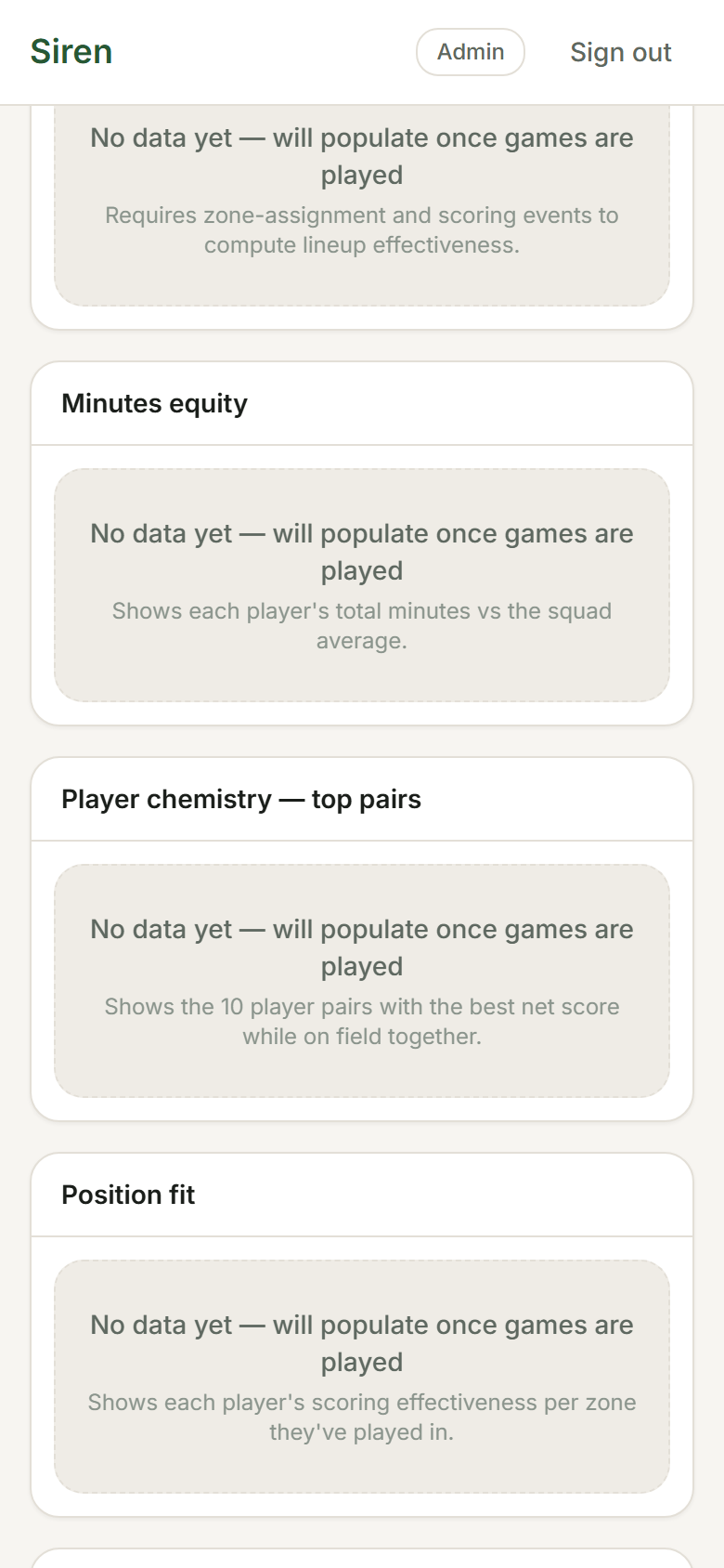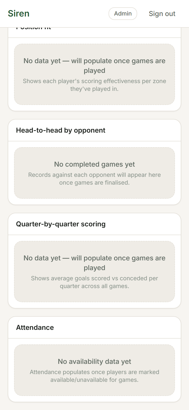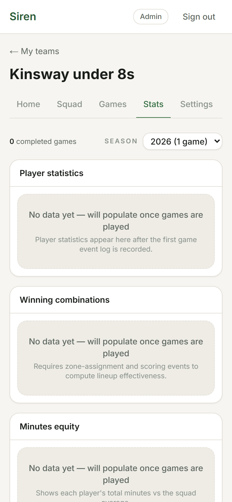 The Stats tab builds up over the course of your season. It draws on every completed game to show how fairly the squad is being used, which player combinations win, and much more.
