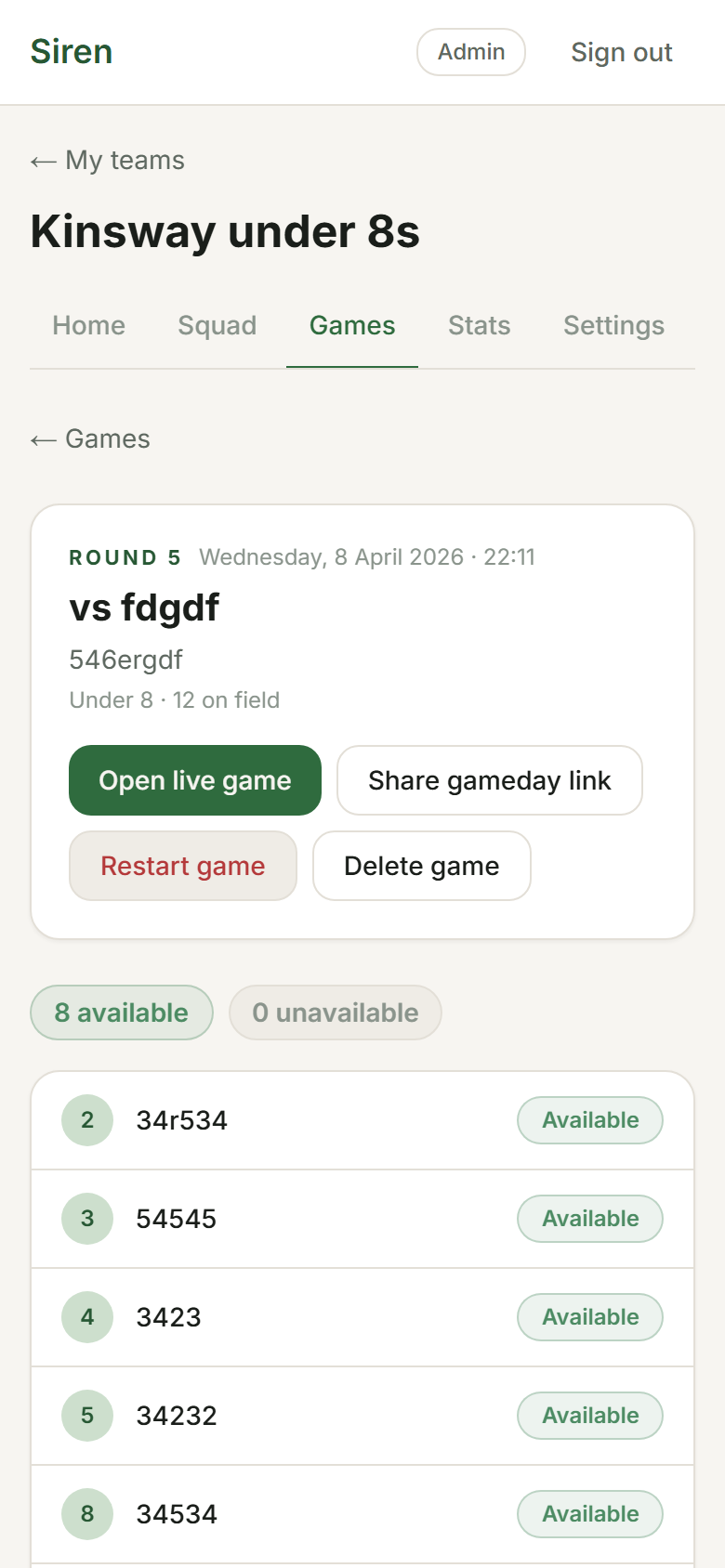 All rotation and fairness features work exactly the same. Minutes equity, attendance, and player stats (excluding goals/behinds) are still recorded. The stats that depend on win/loss data won't populate for games where scoring wasn't tracked.